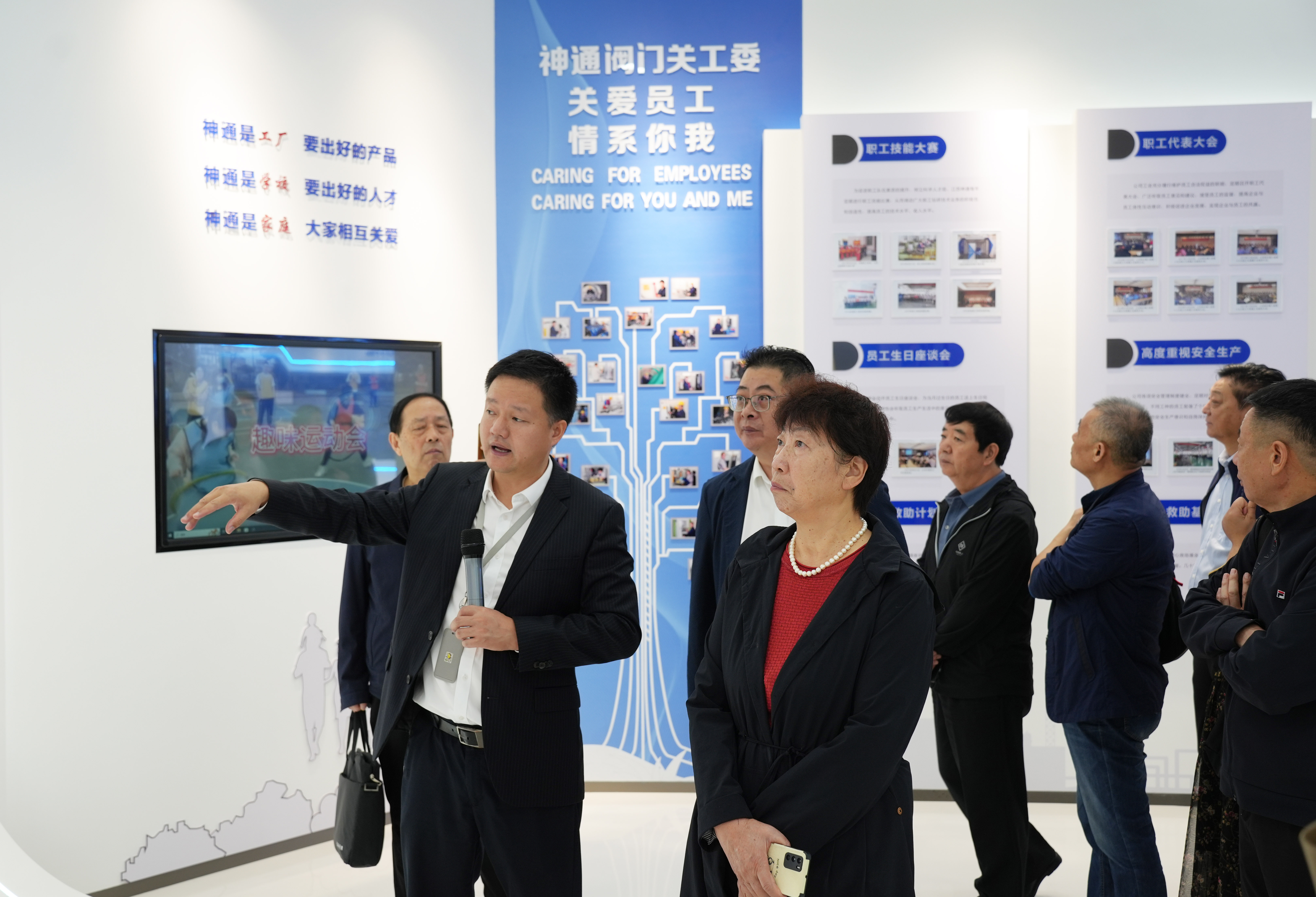 章總陪同袁主席一行參觀了公司3號基地職工之家及總部展廳,詳細(xì)介紹了神通的企業(yè)概況、企業(yè)發(fā)展情況、企業(yè)未來發(fā)展規(guī)劃以及企業(yè)關(guān)工委在關(guān)心員工方面的優(yōu)秀典型做法。
